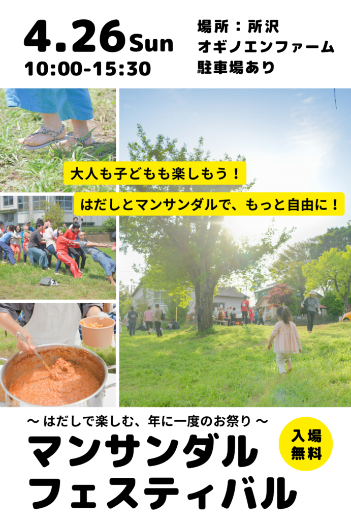 大地を感じ、自分の足を感じ、はだしになる事で何かが始まるかもしれない、はだしのお祭り。はじめてはだしになる人には